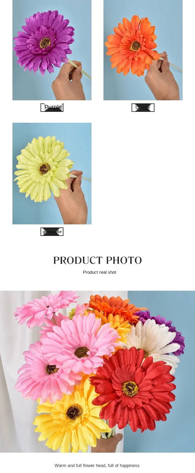 Add everlasting beauty to your space with these vibrant Artificial Silk Flowers a lifelike set of gerbera daisies designed to elevate your home or event décor. Made from high-quality silk material, these flowers feature realistic textures and vivid colors, offering the elegance of real blooms without the upkeep.