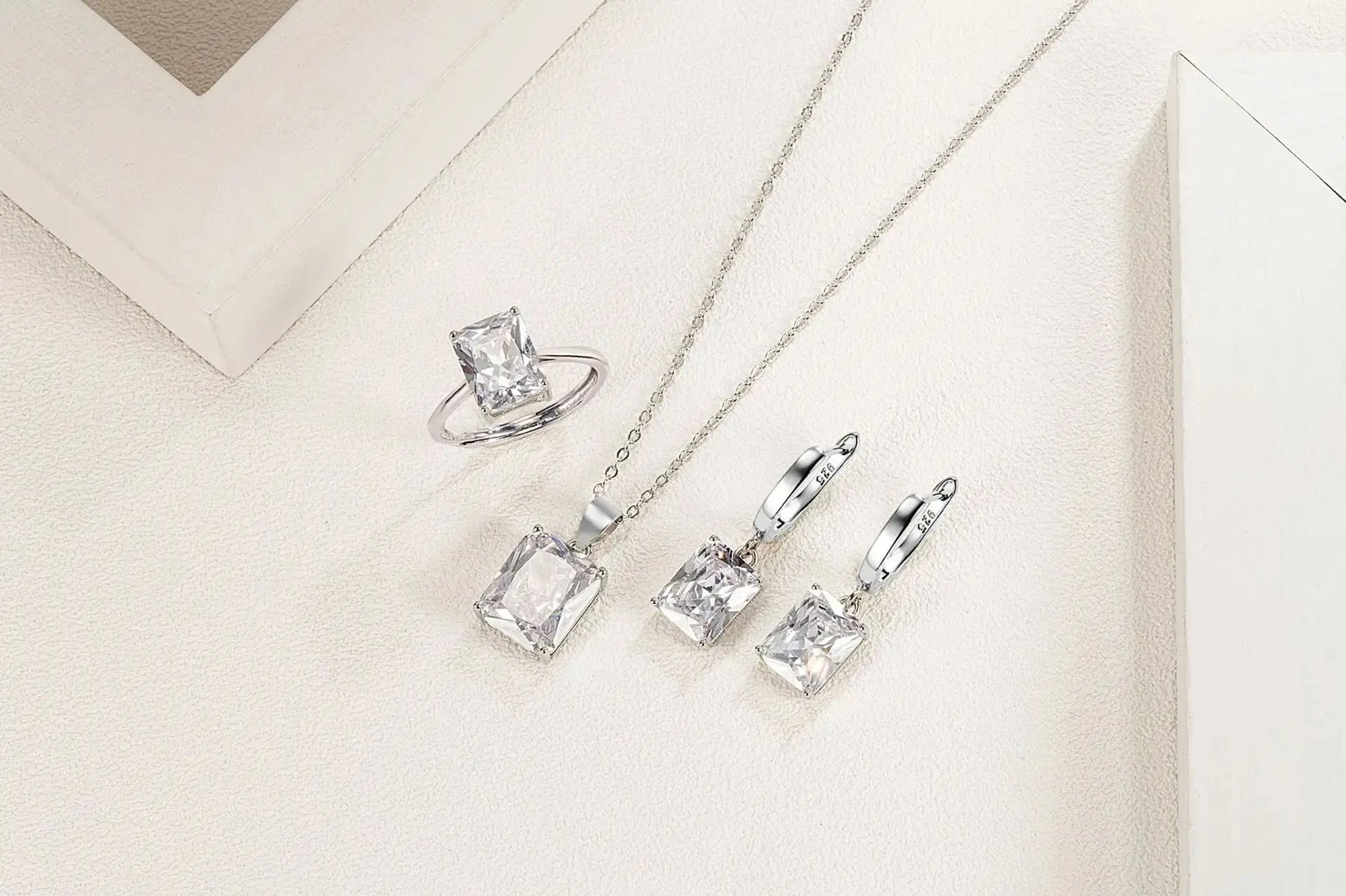 Our elegant jewelry sets are crafted from 925 sterling silver, which ensures both durability and a brilliant shine. The combination of geometric zircon stones adds a touch of modernity without sacrificing elegance. These sets include a stunning ring, earrings, and a necklace that can elevate any outfit. Whether you are dressing for a wedding or a casual outing, these elegant jewelry sets make a perfect accessory.