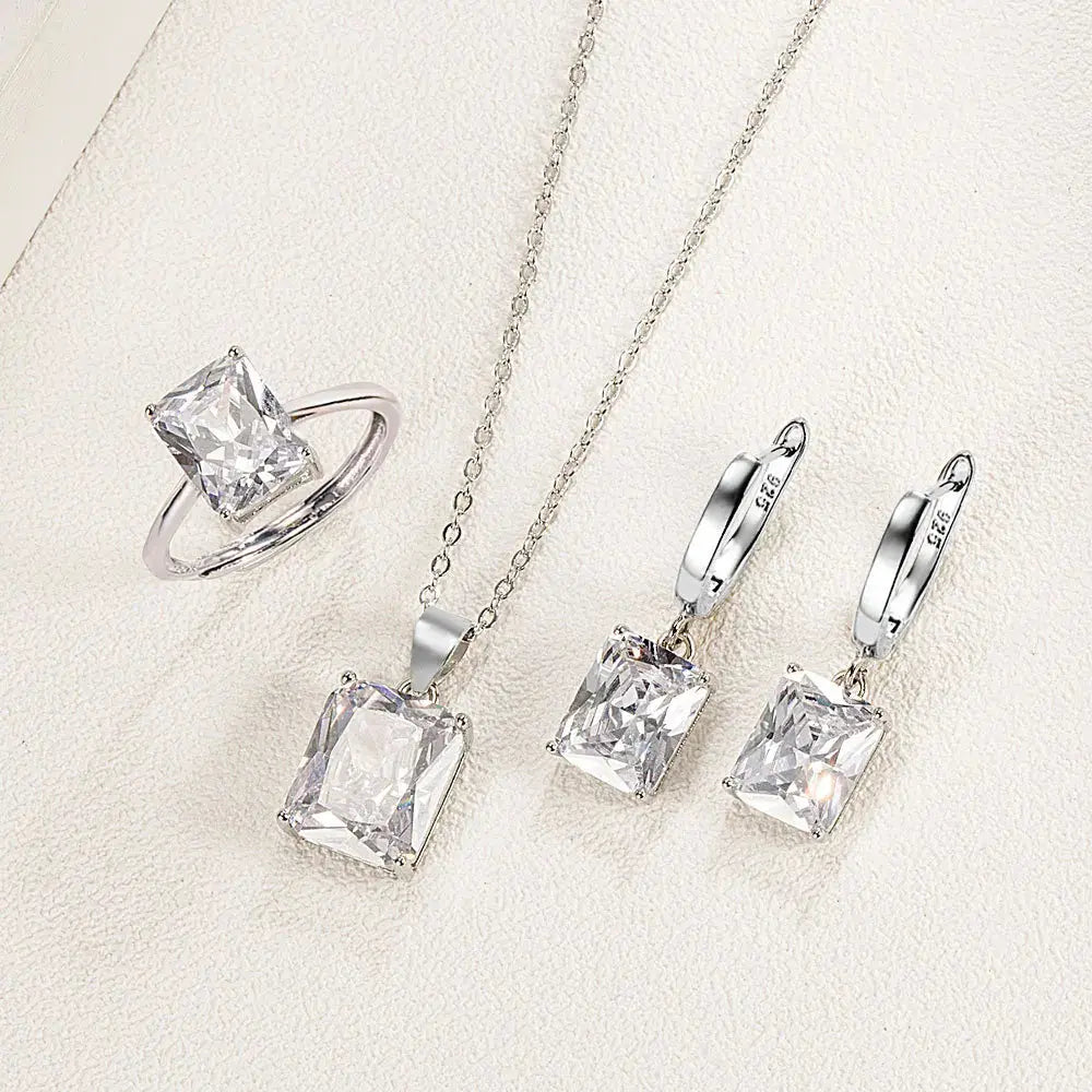 925 Sterling Silver Elegant Jewelry Sets Ring Earrings Necklace For Women Rectangle Geometry Zircon Wedding Accessories Ewkiki