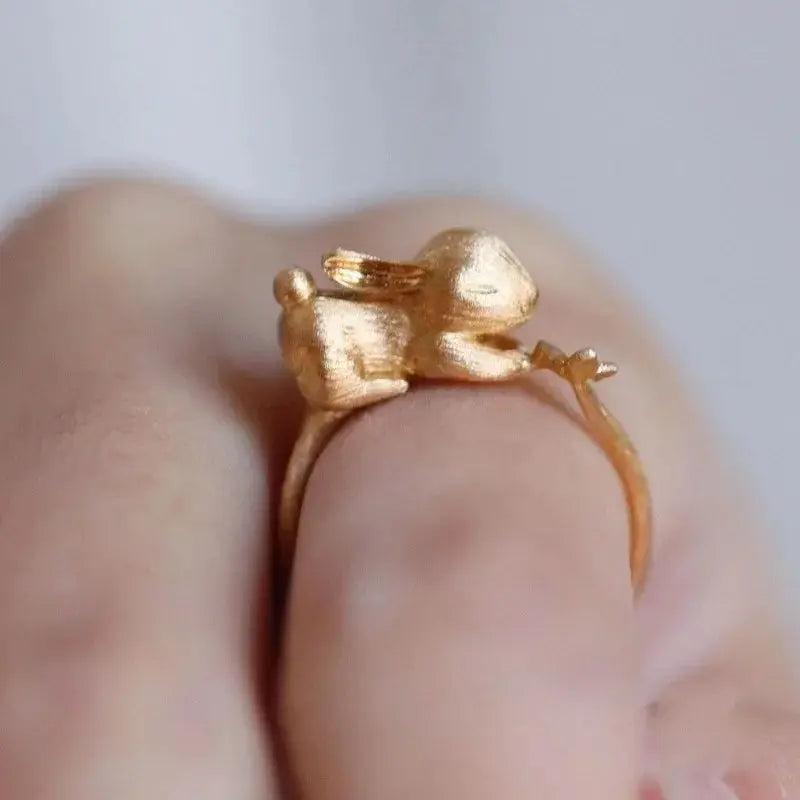 Cute and Exquisite Rabbit Jewelry Sets New in Fun Matte Ancient Gold Craft Earrings for Women Ring Necklace Gifts to Girlfriend Ewkiki