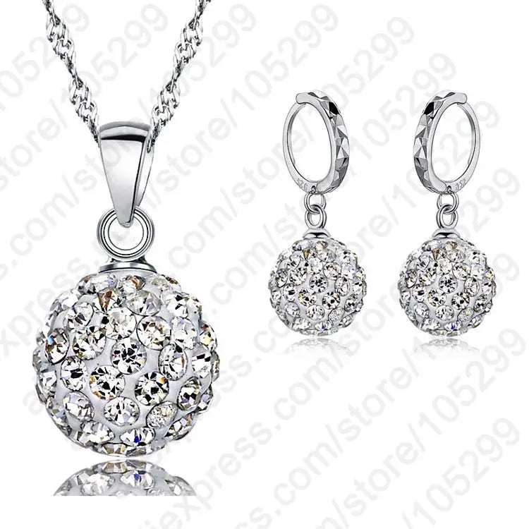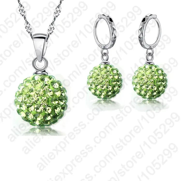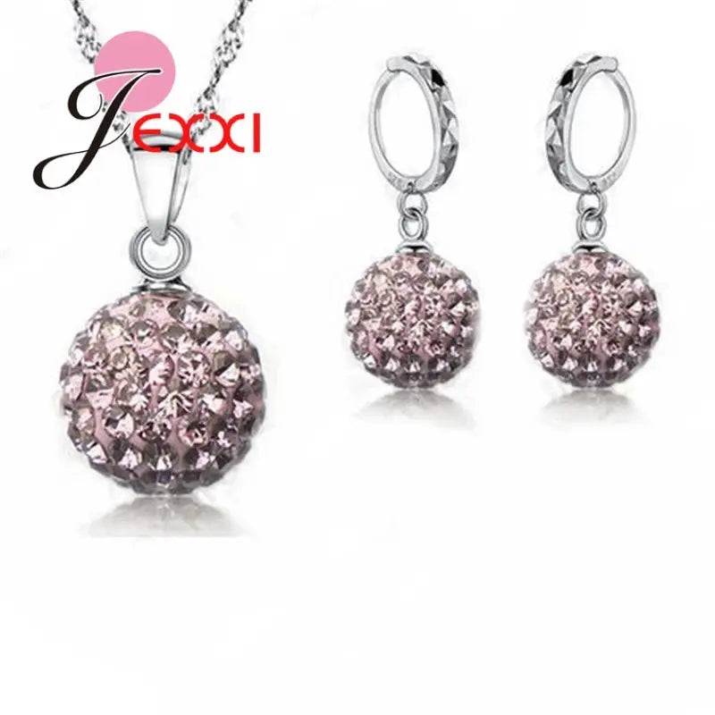 Colorful Crystal Jewelry Set for Female Girls 925 Sterling Pendant Necklaces Earrings Set