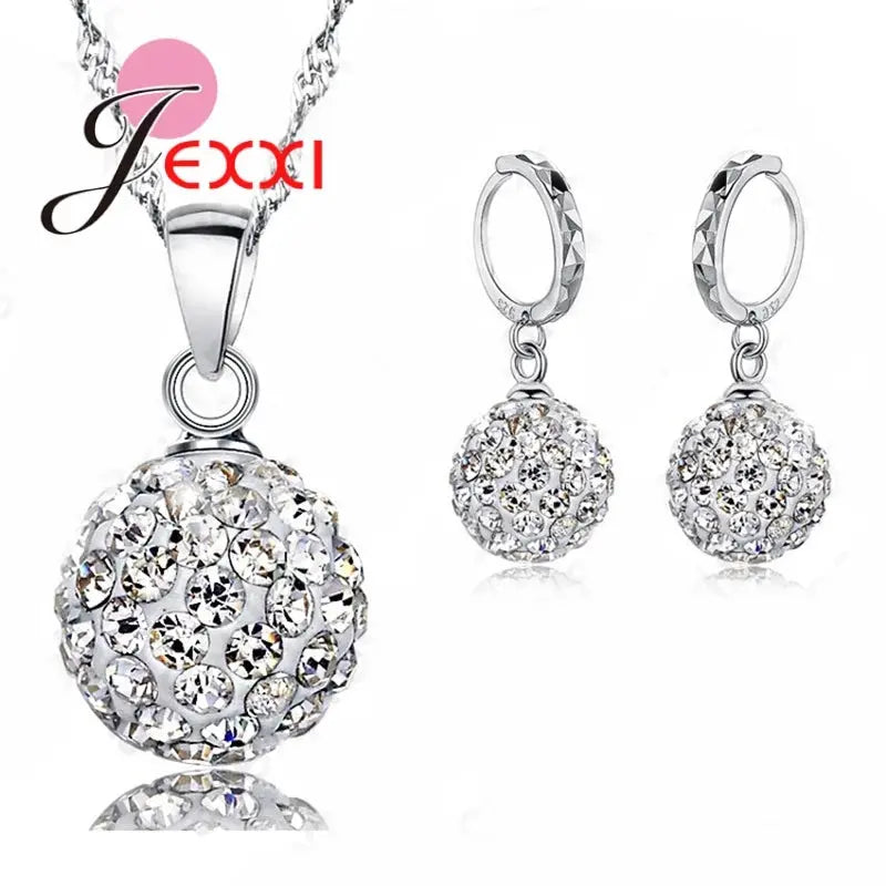Colorful Crystal Jewelry Set for Female Girls 925 Sterling Silver Pendant Necklaces Earrings Set Women Wedding Accessorie Ewkiki