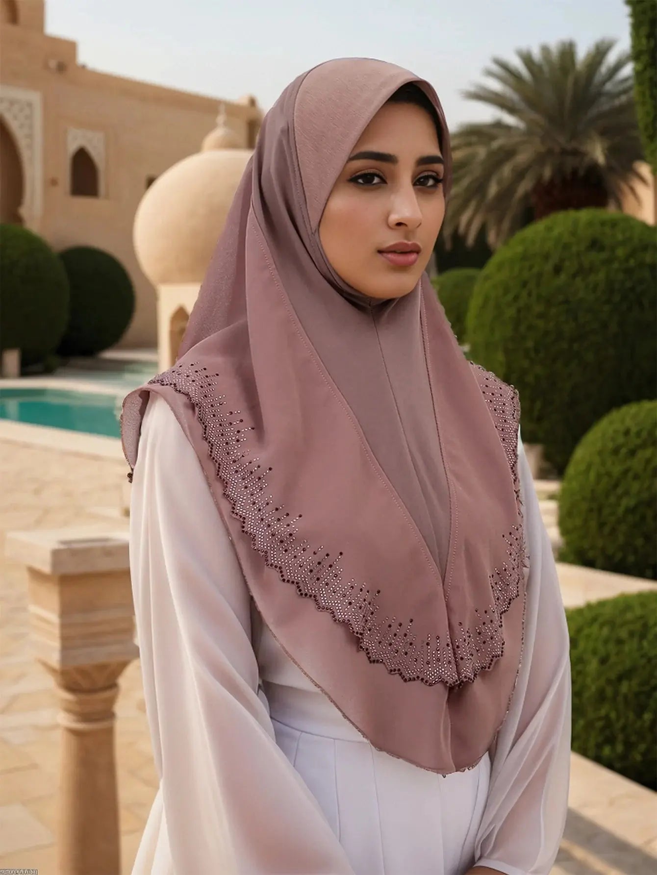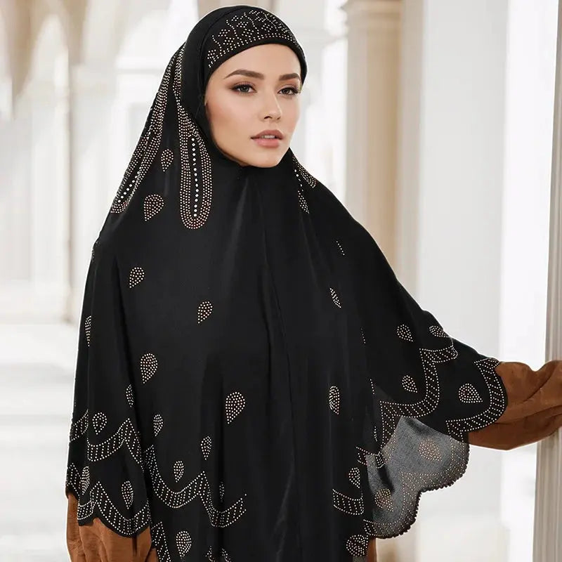 Wearing the Luxury Ramadan Hijab during celebrations is a great way to embrace the spirit of the season. Its eye-catching rhinestones add a touch of glamour, allowing you to shine at every gathering. You can pair it with various outfits, whether traditional or modern, creating a stunning ensemble that reflects the festive mood. Because it blends elegance with everyday wearability, this hijab is perfect not just for Ramadan but also for weddings, parties, and special events throughout the year.