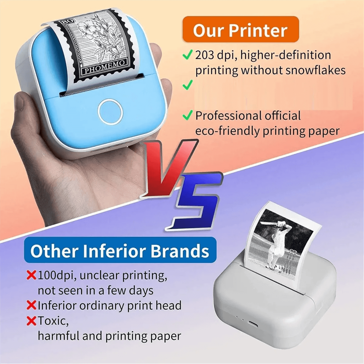 Phomemo T02, rahatlık için tasarlanmış mini bir cep yazıcısıdır. Kompakt tasarımı sayesinde taşıması kolaydır ve etiketleri her yerde, her zaman basmanıza olanak tanır. Bu küçük güç merkezi çantanıza mükemmel şekilde sığar, böylece ister evde, ister okulda, ister seyahatte olun, özel çıkartmalar ve etiketler oluşturabilirsiniz. Bu yazıcının hafif yapısı, temel ihtiyaçlarınızı karşılamasını sağlar. Ancak boyutunun sizi aldatmasına izin vermeyin; etiketleme ihtiyaçlarınızı karşılayacak etkileyici baskı özelliklerine sahiptir.